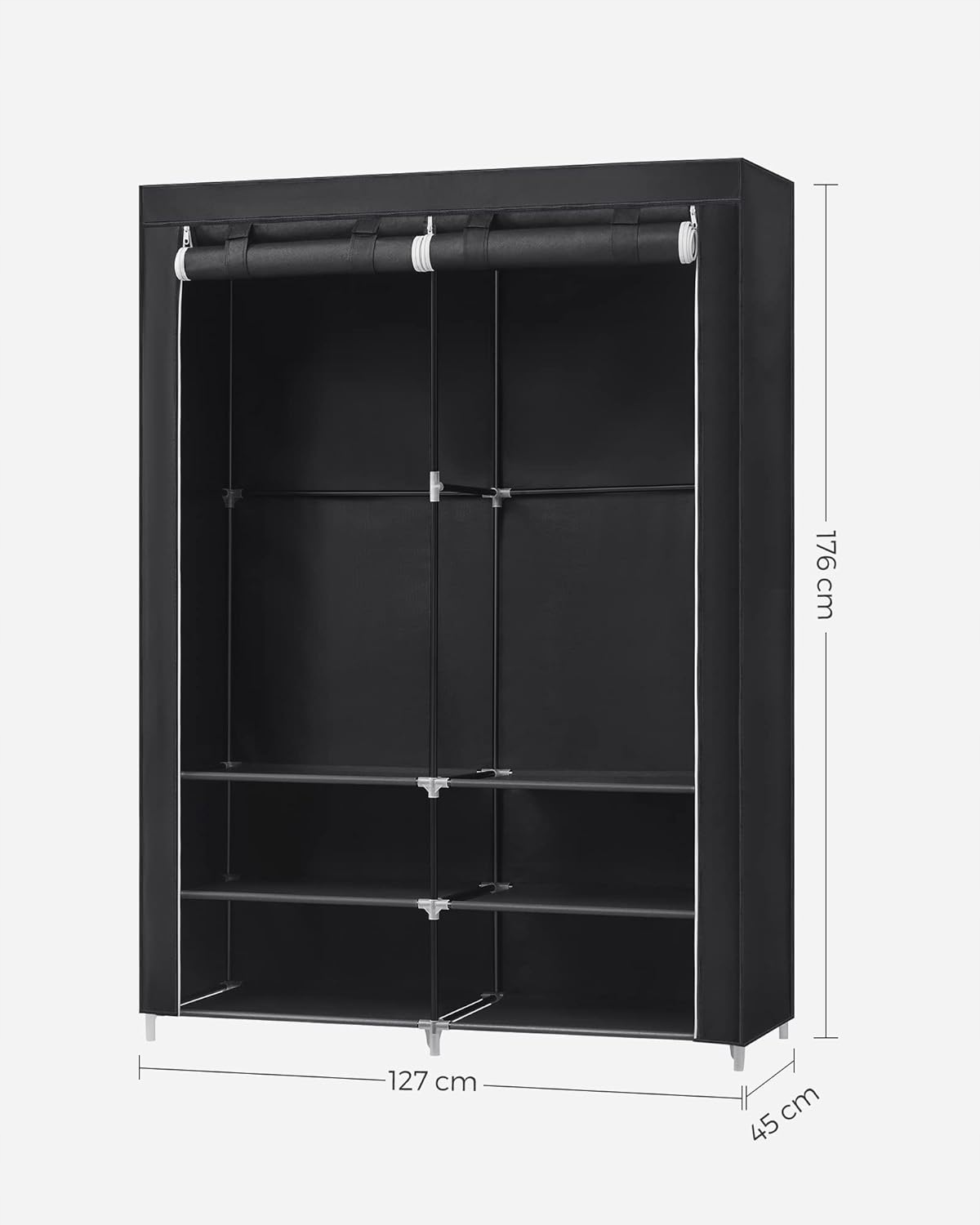 Szafa materiałowa 127 cm z półkami i drążkiem czarna SONGMICS