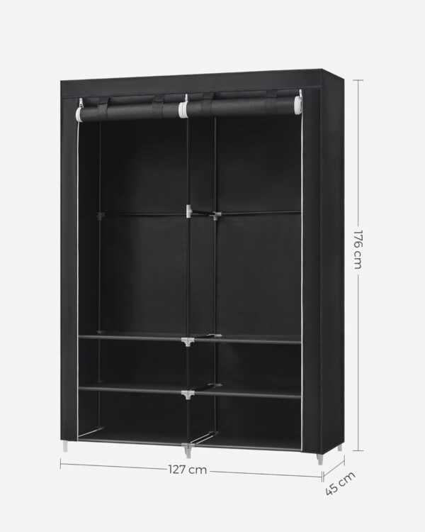 Szafa materiałowa 127 cm z półkami i drążkiem czarna SONGMICS