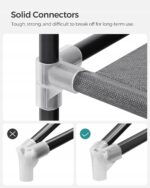 Konstrukcja z metalowych rurek i wzmocnionych łączników zapewnia stabilność – każdy drążek wytrzymuje do 15 kg, a półka do 5 kg. Całość osłonięta jest wytrzymałą włókniną w eleganckim czarnym kolorze.