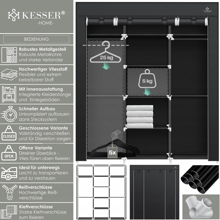 KESSER Szafa z solidną metalową ramą, wysokiej jakości włókniną, łatwy montaż.