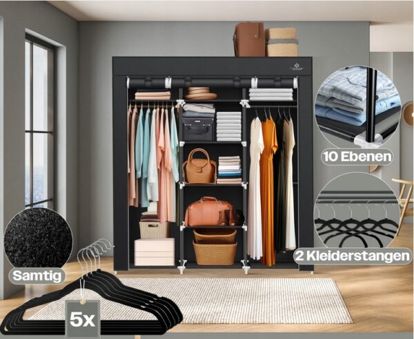 - • Obszerna przestrzeń do przechowywania z 10 poziomami i 2 drążkami na ubrania