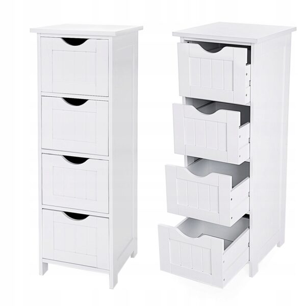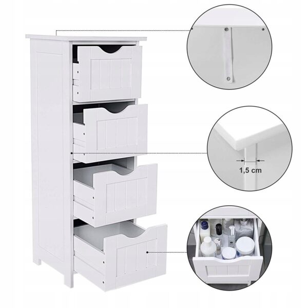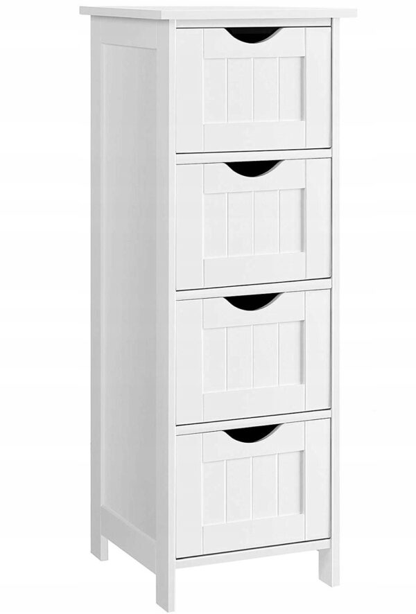 Szafka boczna VASAGLE w stylu wiejskim to połączenie funkcjonalności i ponadczasowego uroku. Smukła forma i klasyczna biel sprawiają, że mebel doskonale pasuje do łazienki, przedpokoju, salonu lub sypialni.