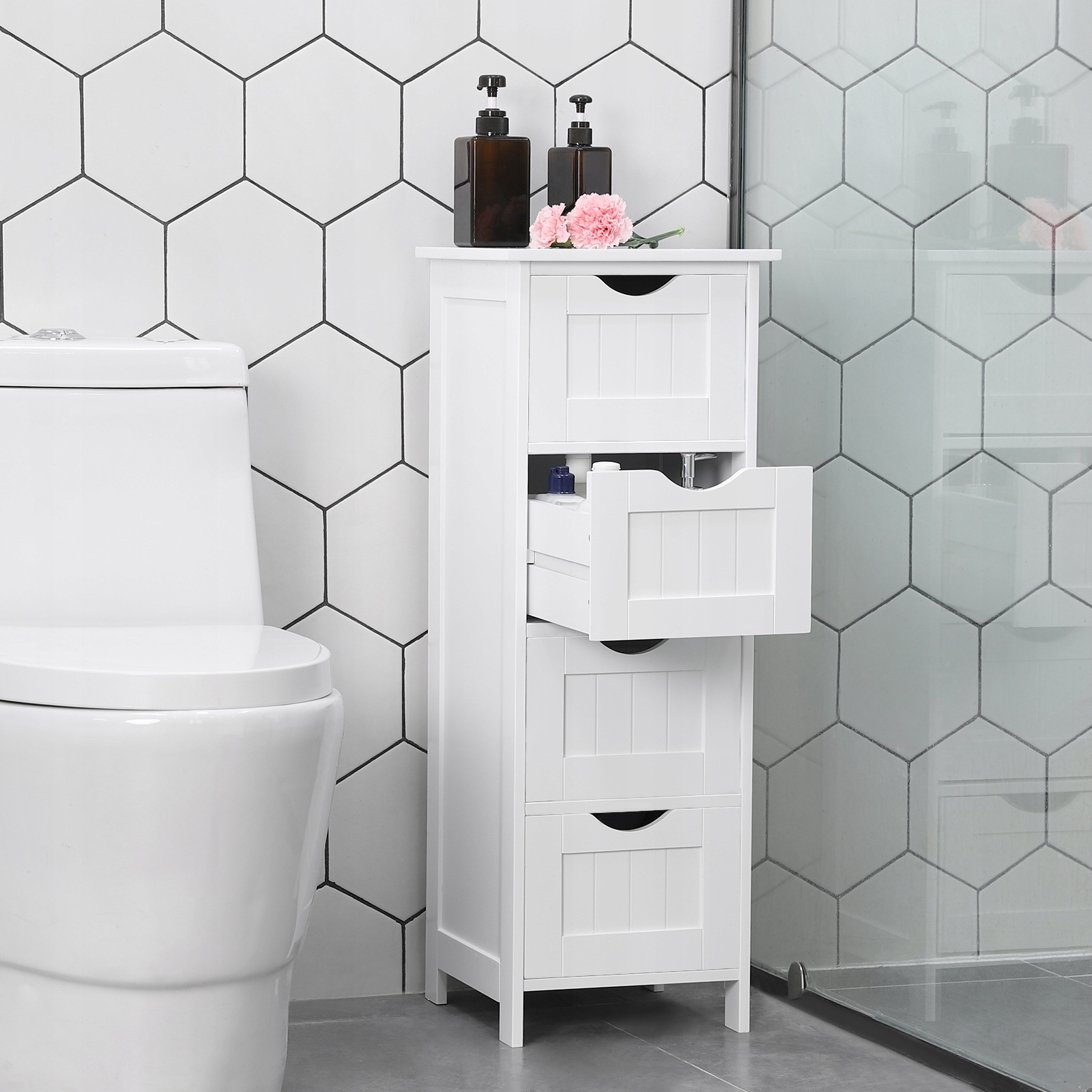 Szafka sprawdzi się jako organizer na kosmetyki, akcesoria łazienkowe, drobiazgi domowe czy dodatki dekoracyjne.
