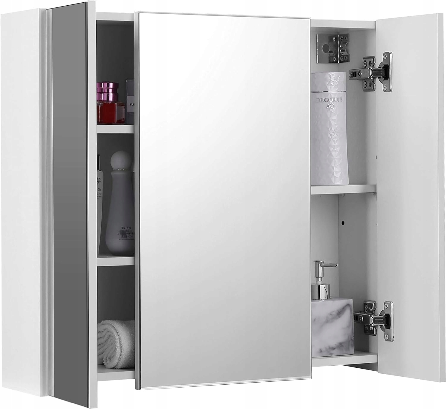 Szafka łazienkowa z lustrem 3 drzwi 60 cm biała VASAGLE