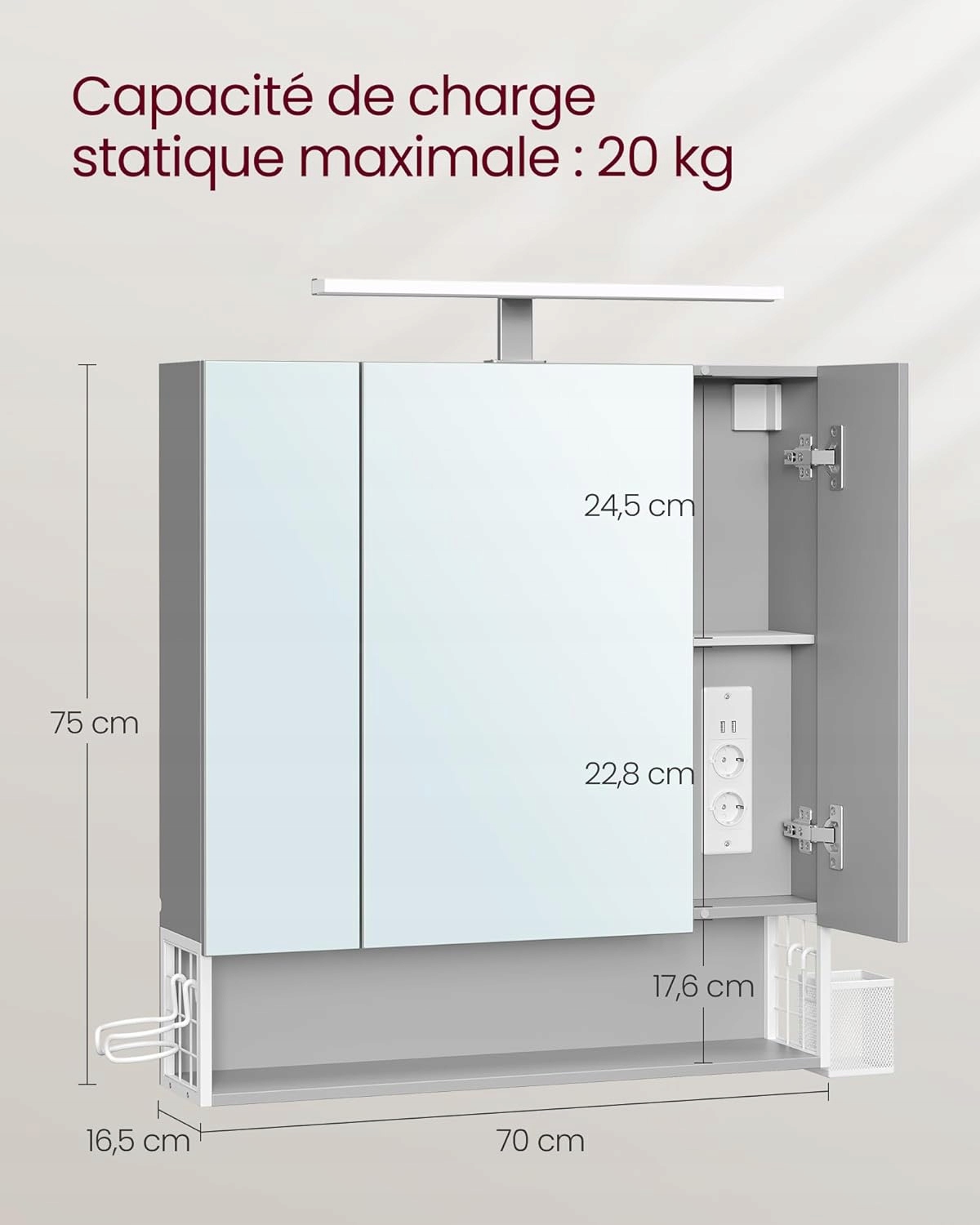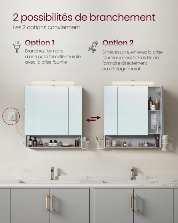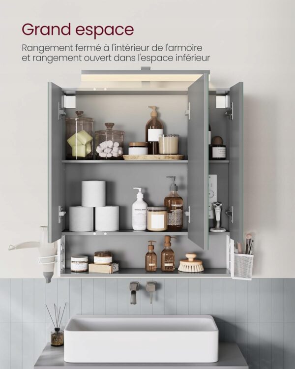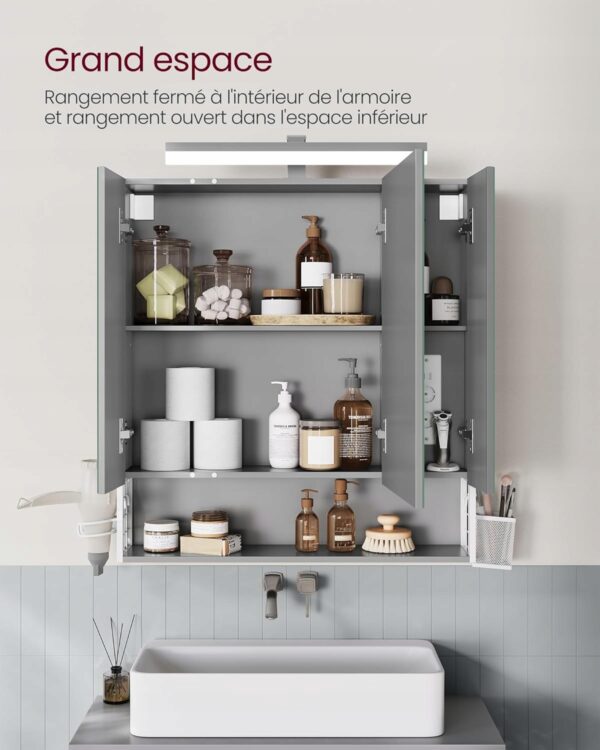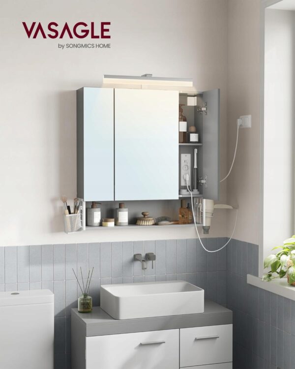 Nowoczesna szafka łazienkowa VASAGLE z lustrem i oświetleniem LED to praktyczne centrum codziennej pielęgnacji. Przemyślane rozwiązania, gniazda elektryczne oraz elegancki wygląd sprawiają, że idealnie sprawdzi się w każdej nowoczesnej łazience.