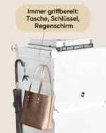 ✅ Montaż jest prosty dzięki czytelnej instrukcji oraz dołączonemu gumowemu młotkowi. Kompaktowe wymiary sprawiają, że regał świetnie sprawdzi się w małych przedpokojach, garderobach czy mieszkaniach. Otwarta forma poprawia wentylację, a górna półka może służyć jako miejsce na klucze lub dekoracje. Gładkie powierzchnie łatwo utrzymać w czystości, wystarczy przetrzeć je wilgotną ściereczką.