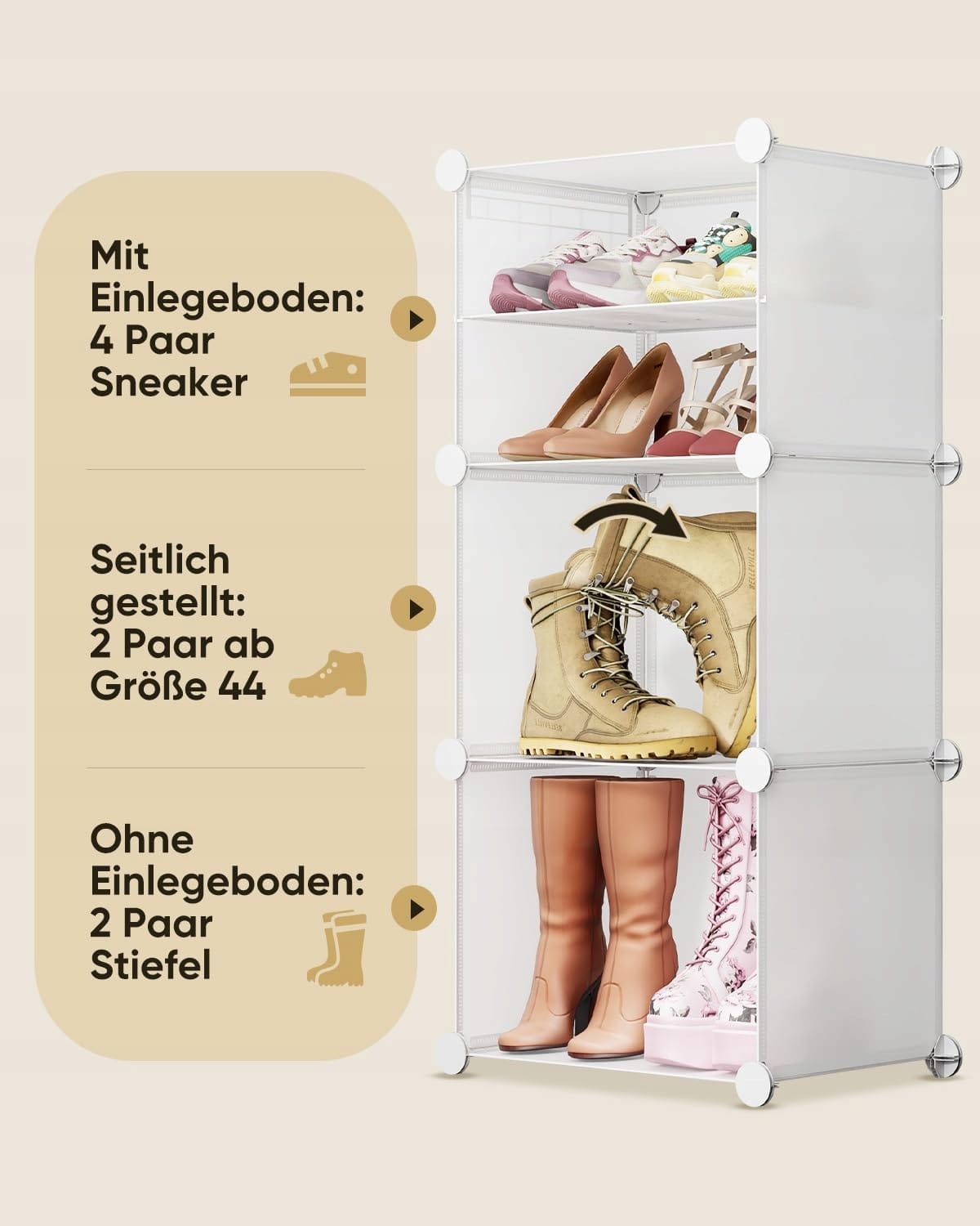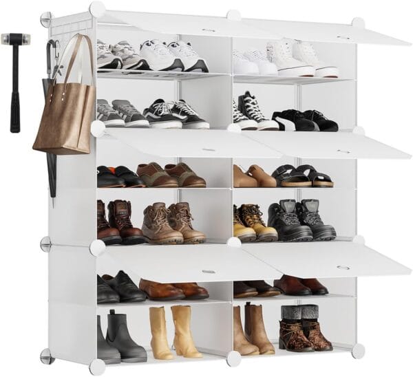 ✅ Szafka na buty Sekey z 6 modułowymi przegrodami to praktyczne rozwiązanie dla całej rodziny. Pomieści do 24 par obuwia, w tym sneakersy i botki. Każda komora wykonana jest z trwałych i wilgocioodpornych paneli PP, a wzmocnione łączniki oraz zabezpieczenie przed przewróceniem zapewniają stabilność i bezpieczne użytkowanie. Konstrukcję można rozszerzać na boki, tworząc dodatkowe miejsce na torby czy akcesoria.