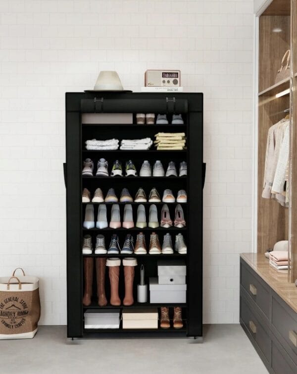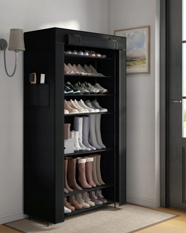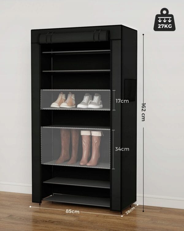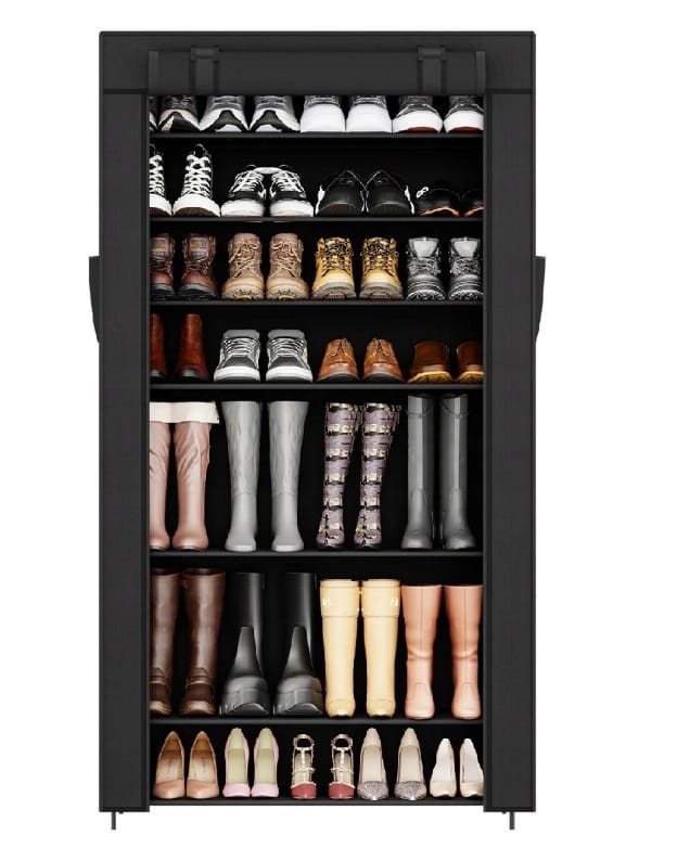✅ Konstrukcja opiera się na metalowych rurkach oraz wzmocnionych plastikowych łącznikach. Każda półka może udźwignąć do 10 kg co gwarantuje stabilność nawet przy ciężkich butach. Szafka jest wytrzymała i przeznaczona do długotrwałego użytku.