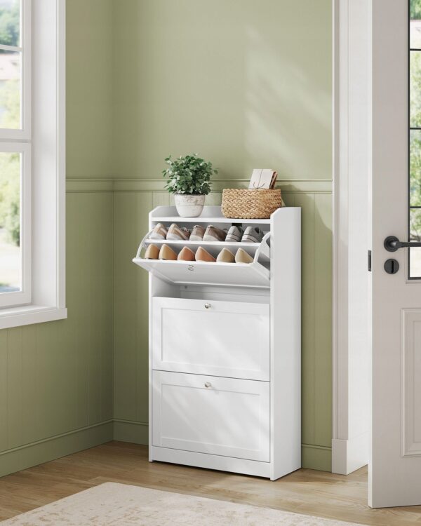 Szafka na buty z uchylnymi półkami 18 par biała VASAGLE