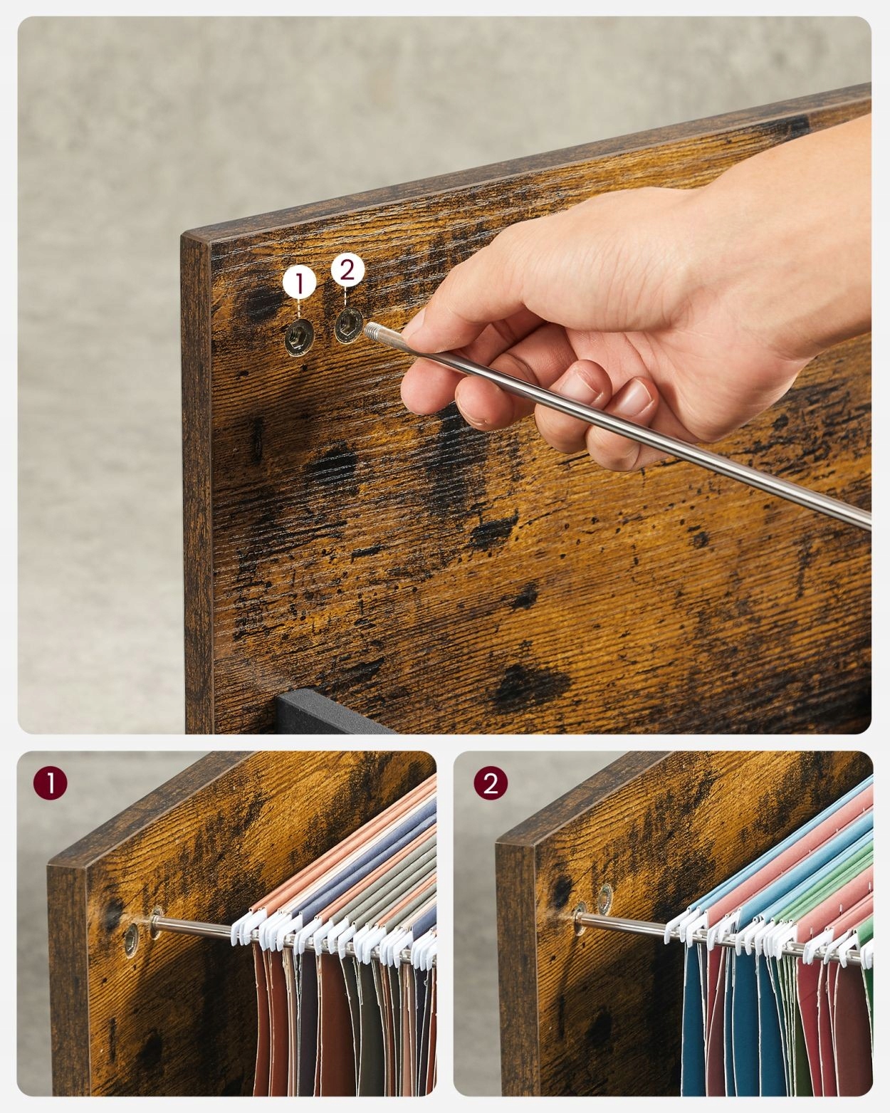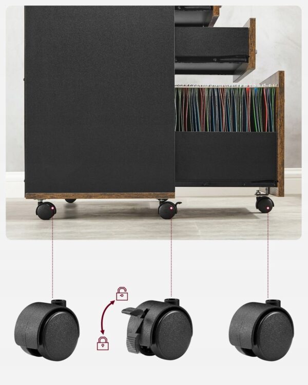 Funkcjonalna szafka na dokumenty VASAGLE pomoże utrzymać porządek w biurze, gabinecie lub domowym miejscu pracy. Dzięki trzem pojemnym szufladom, otwartym półkom i mobilnej konstrukcji na kółkach wszystkie dokumenty oraz akcesoria biurowe będą zawsze pod ręką.