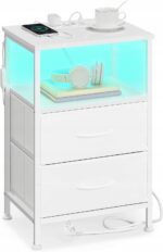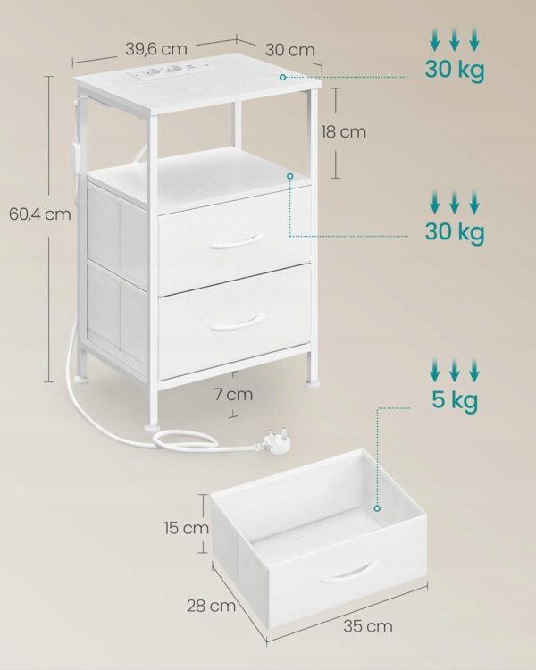 Szafka nocna z ładowarką LED USB APP biała SONGMICS