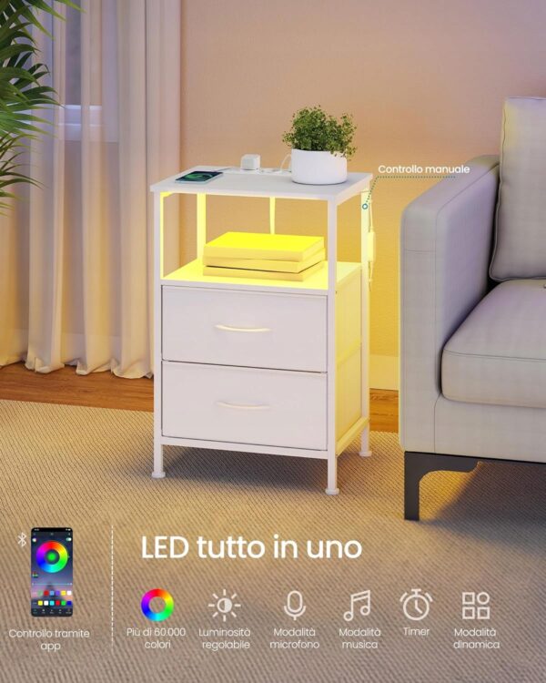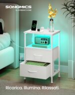 Nowoczesna szafka nocna SONGMICS BELLAH to połączenie funkcjonalności, stylu i technologii. Dzięki wbudowanej stacji ładowania oraz podświetleniu LED sterowanemu aplikacją zyskujesz wygodę i wyjątkowy klimat w sypialni.