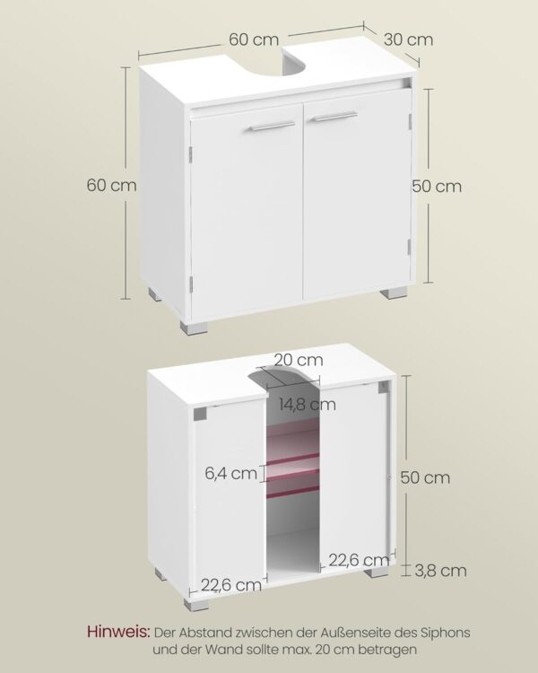 VASAGLE szafka pod umywalkę bez kolumny biała nowoczesna 60 cm