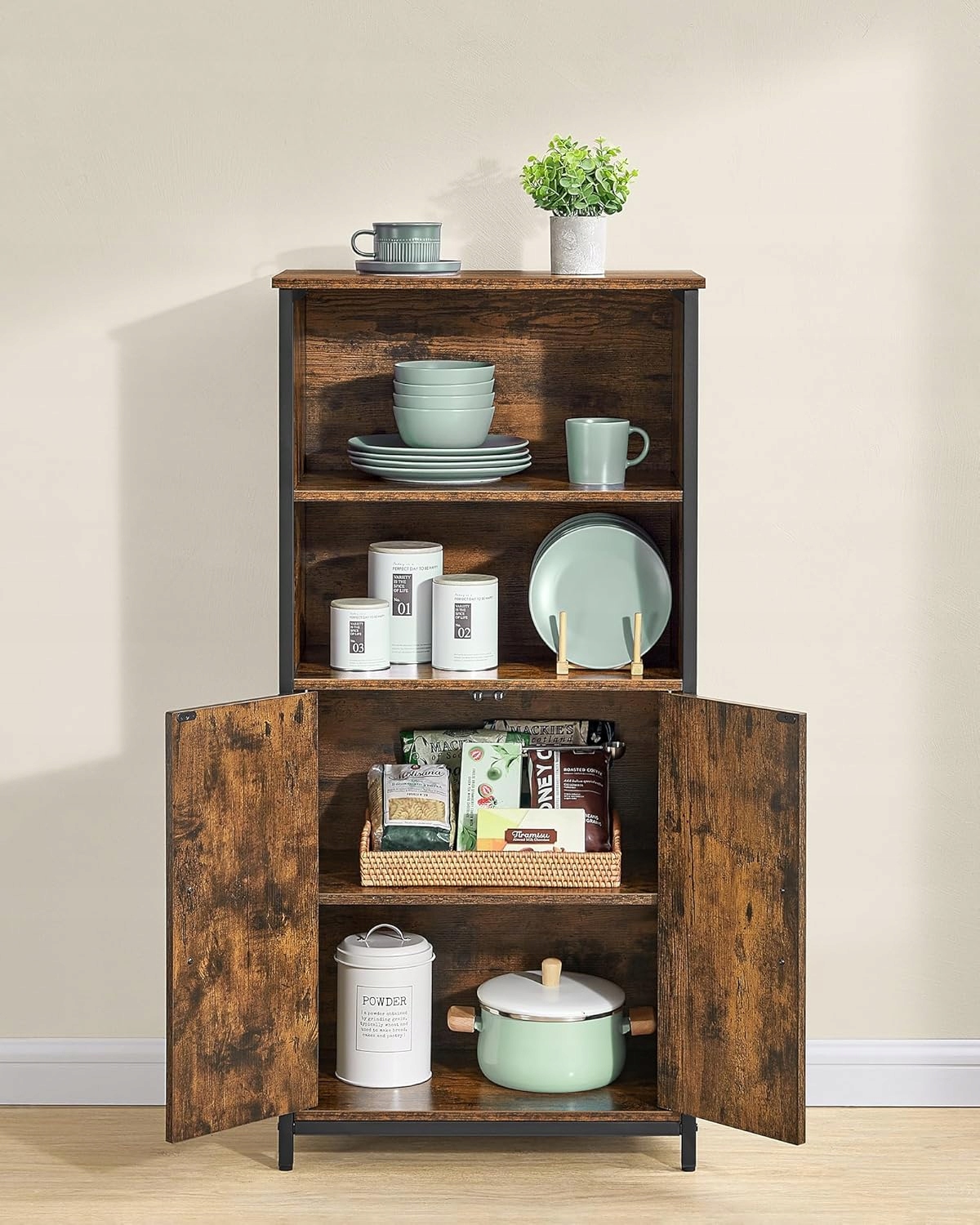 ✅ Duża pojemność – otwarte półki i zamykana szafka