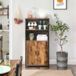 Szafka regał z drzwiami półki loft czarno brązowa 125 cm VASAGLE