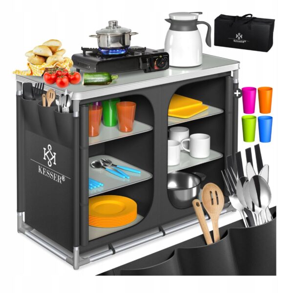 Kuchnia turystyczna marki KESSER to idealne rozwiązanie dla każdego, kto ceni porządek i funkcjonalność podczas biwakowania, imprez plenerowych czy pracy w ogrodzie. Dzięki lekkiej konstrukcji i składanej formie, szybko ją rozłożysz i schowasz, oszczędzając miejsce i czas.