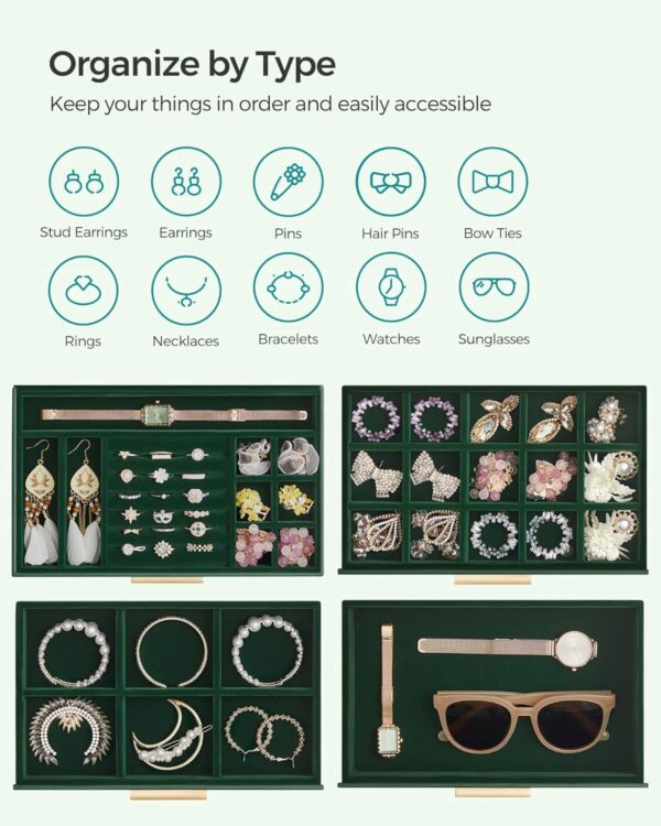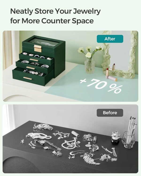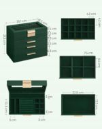 Szkatułka na biżuterię 4 poziomy z szufladami szkło zielona SONGMICS