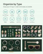 ✅ Organizer pozwala uporządkować pierścionki, kolczyki, naszyjniki, bransoletki i zegarki tak, aby były zawsze pod ręką i bez splątania. Doskonale prezentuje się na toaletce, komodzie lub w garderobie.