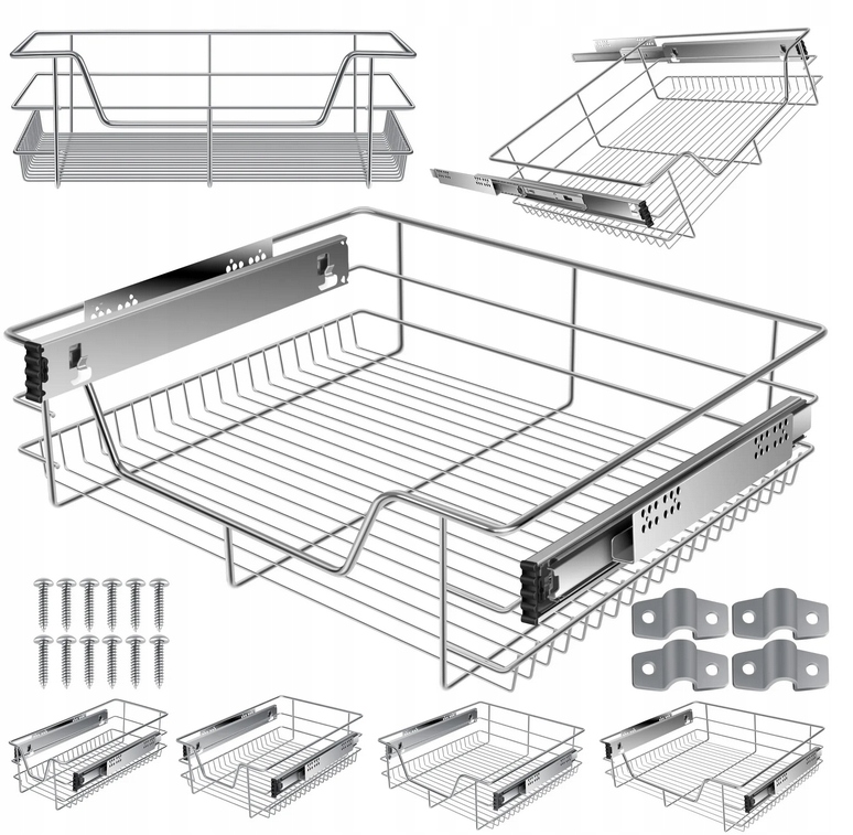 Większa przejrzystość i porządek Ułatwia wkładanie i wyjmowanie Elastyczne szyny z pełnym wysuwem Łatwy montaż Szuflada teleskopowa do doposażenia w istniejące szafki lub regały. Pasuje do szafek o wymiarach zewnętrznych 30 / 40 / 50 / 60 cm (w zależności od wybranego modelu)