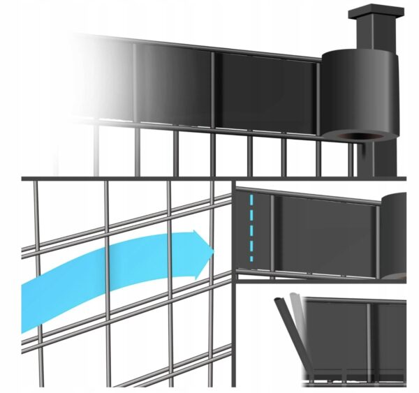 Nasze listwy przyciemniające nadają się do ogrodzeń z pojedynczych i podwójnych prętów oraz siatek kratowych o rozstawie 20 cm i dlatego pasują do wszystkich popularnych siatek z podwójnym prętem.