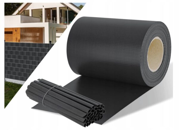 Osłona na płot, mata maskująca w rolce 19 cm x 3,5 m PVC antracyt