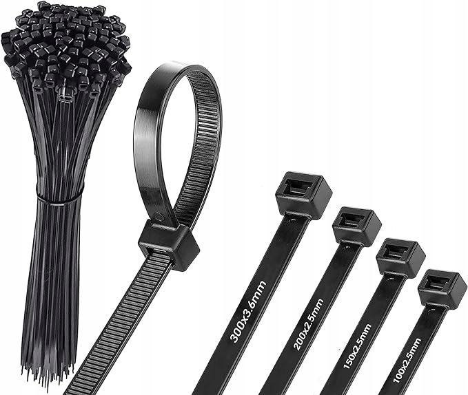 Opaski zaciskowe / Trytytki – Zestaw 500 sztuk (2.5×100, 2.5×150, 2.5×200, 3.6×300)