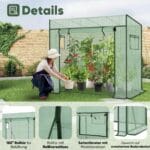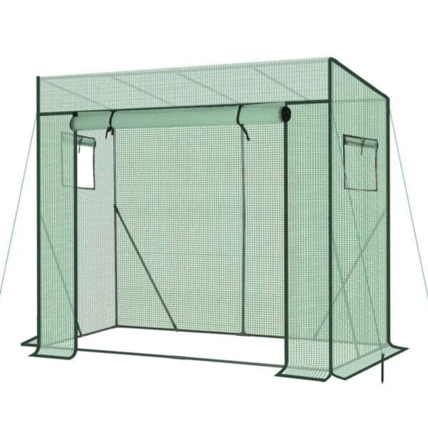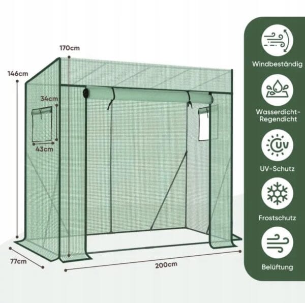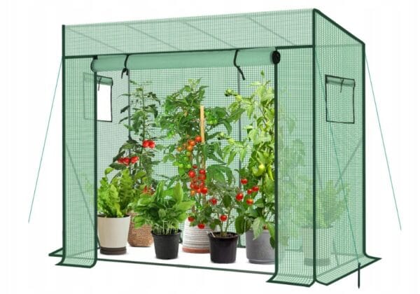 Tunel wyposażony jest w rolowane drzwi na zamek błyskawiczny oraz okna boczne które umożliwiają łatwy dostęp i skuteczną wentylację. Pozwala to na kontrolę temperatury i wilgotności wewnątrz w zależności od potrzeb różnych upraw.