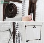 Tunel wyposażony jest w rolowane drzwi na zamek błyskawiczny oraz okna boczne które umożliwiają łatwy dostęp i skuteczną wentylację. Pozwala to na kontrolę temperatury i wilgotności wewnątrz w zależności od potrzeb różnych upraw.