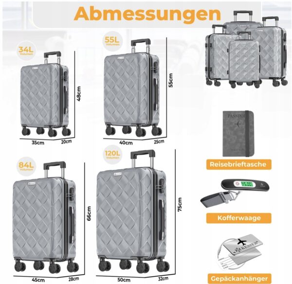 Nowoczesny design sprawia, że walizki KESSER prezentują się elegancko i profesjonalnie. Dzięki różnym rozmiaromdopasujesz walizkę do długości i rodzaju wyjazdu – od krótkich city breaków po długie wakacje.