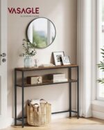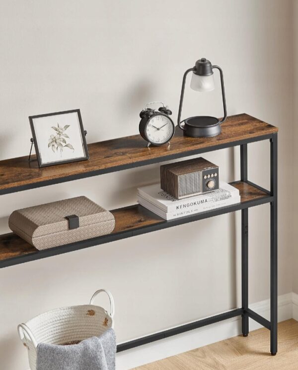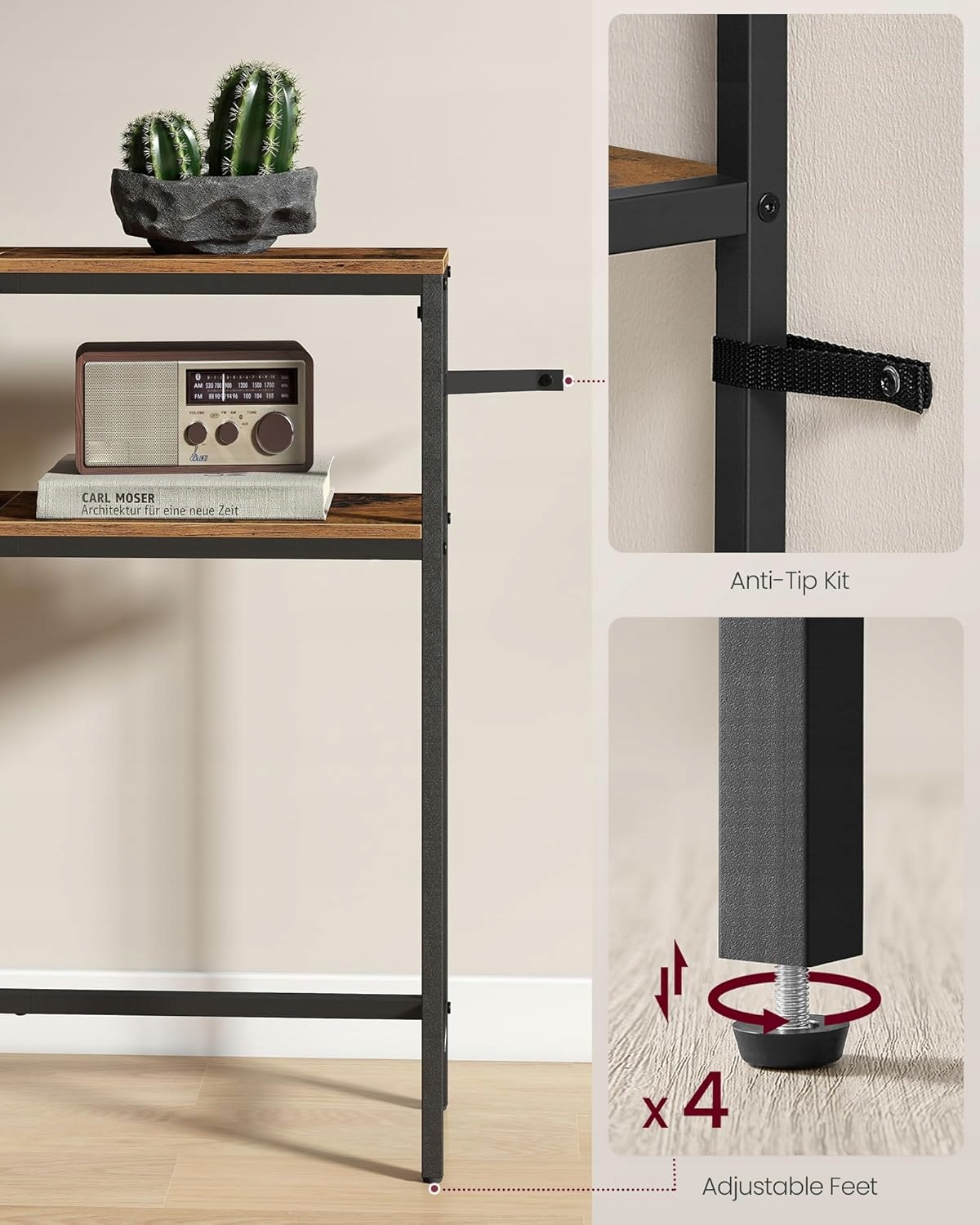Nowoczesna konsola VASAGLE w stylu loft to idealne rozwiązanie do przedpokoju, salonu lub wąskiej przestrzeni przy ścianie. Połączenie rustykalnego brązu z czarną stalową ramą nadaje wnętrzu elegancki, industrialny charakter.