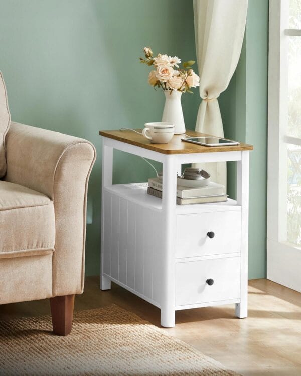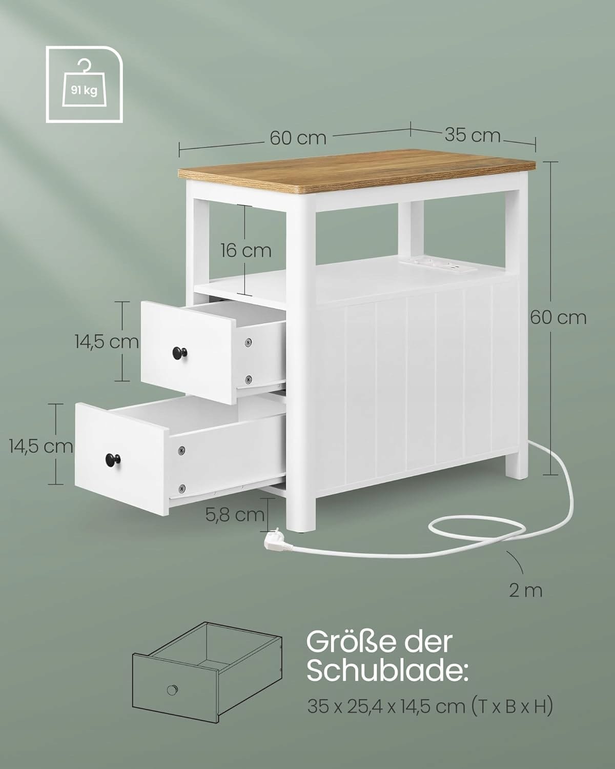 Wąska szafka nocna z gniazdkami i USB 60 cm VASAGLE