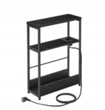 Wąski stolik nocny z gniazdkiem i USB 3 półki czarny VASAGLE