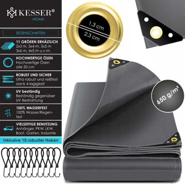 Wielofunkcyjna plandeka ochronna KESSER z PVC – 3×5 m
