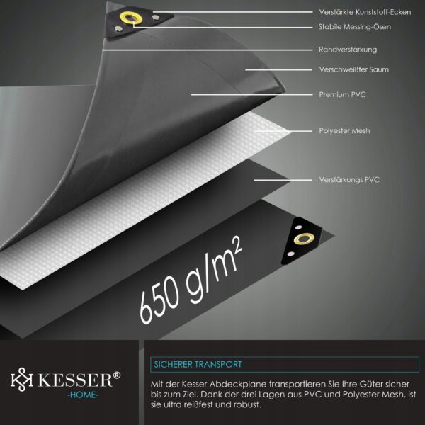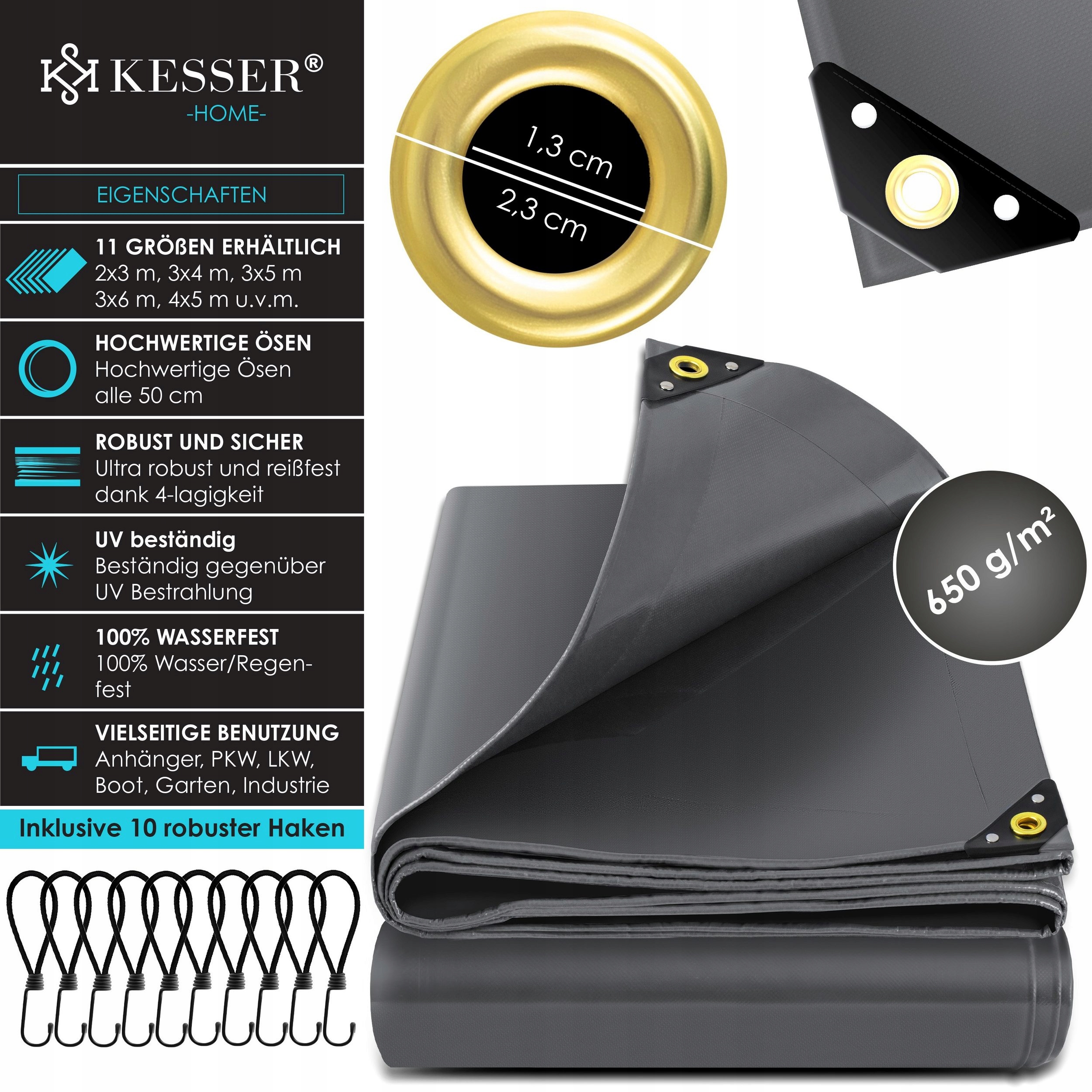 ✅ Plandeka ochronna marki KESSER to wyjątkowo trwałe i niezawodne zabezpieczenie przeznaczone do użytku prywatnego oraz profesjonalnego. Wykonana z mocnego materiału PVC z siatką poliestrową, wyróżnia się znacznie większą wytrzymałością niż standardowe plandeki z tworzywa PE.
