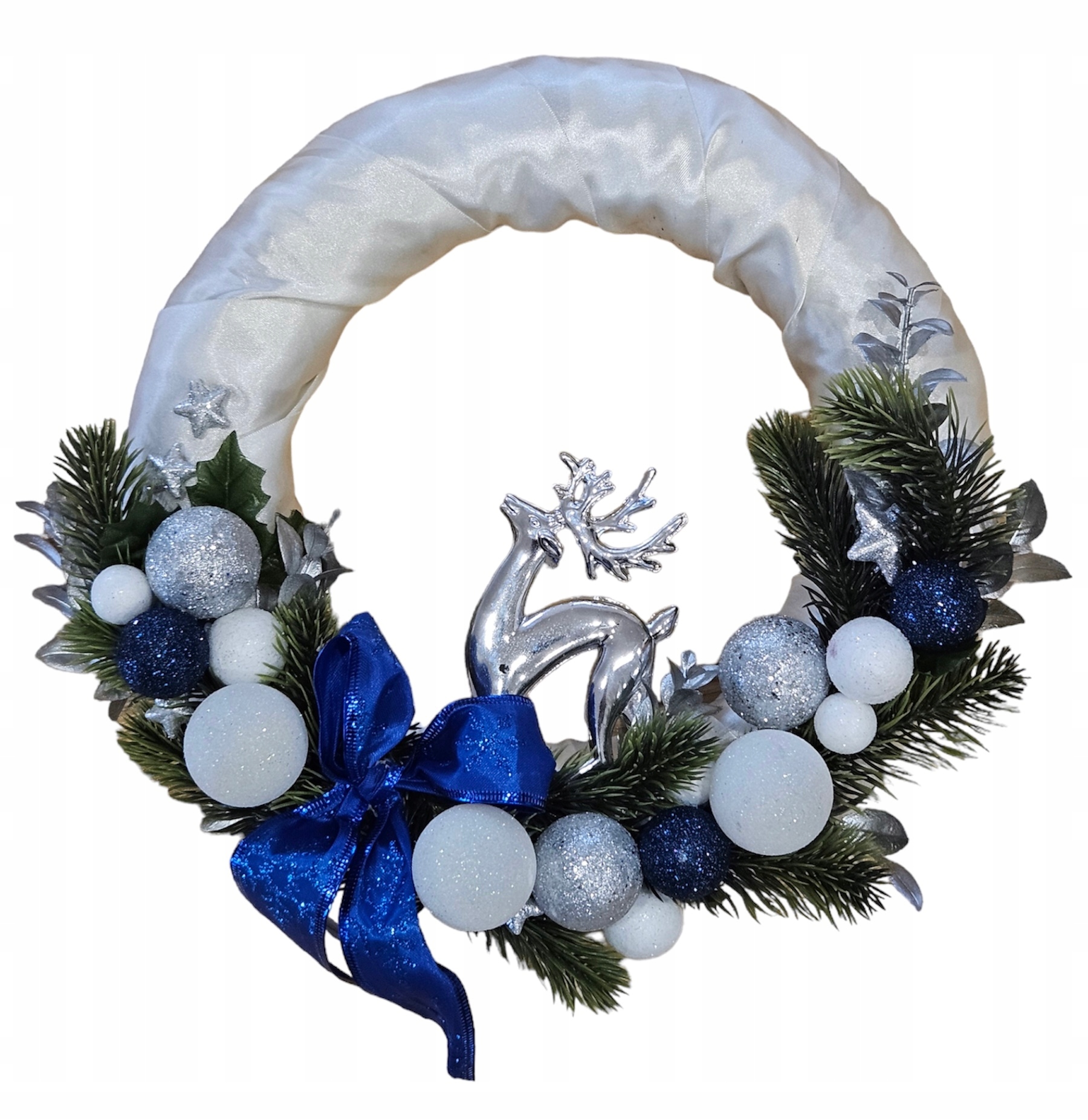 Wieniec świąteczny Boże Narodzenie niebiesko-srebrny z reniferem