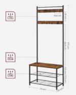 Funkcjonalny wieszak do przedpokoju 3w1, który łączy w sobie miejsce na odzież, wygodną ławkę oraz półki na buty. Idealne rozwiązanie do utrzymania porządku nawet w niewielkiej przestrzeni.