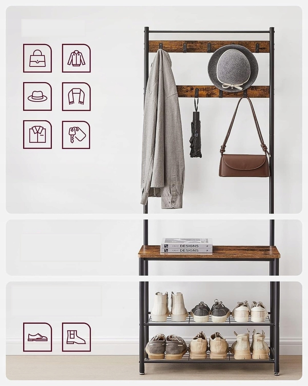 ✅ Funkcjonalny organizer 3w1 – wieszak, ławka i półki