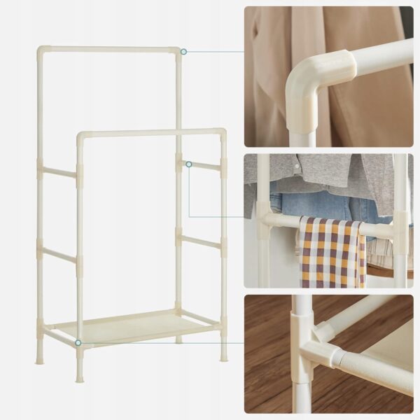 Wieszak na ubrania podwójny stojak garderoba półki biały SONGMICS