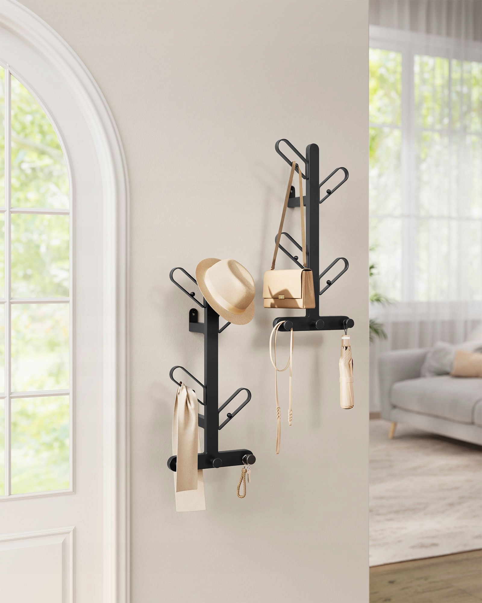 Wieszak ścienny 2 szt 7 haczyków metalowy czarny do przedpokoju SONGMICS