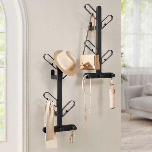 Praktyczny zestaw 2 wieszaków ściennych to idealne rozwiązanie do uporządkowania przestrzeni w przedpokoju, sypialni lub salonie. Dzięki montażowi na ścianie oszczędzasz miejsce i zyskujesz wygodny dostęp do najpotrzebniejszych rzeczy.