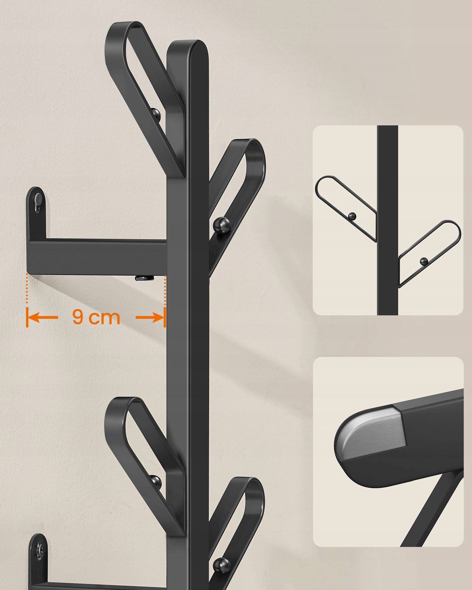 Nowoczesny design w kształcie drzewa oraz elegancki czarny kolor sprawiają, że wieszaki świetnie wpasują się w każde wnętrze. Solidna stalowa konstrukcja gwarantuje trwałość i stabilność na lata.