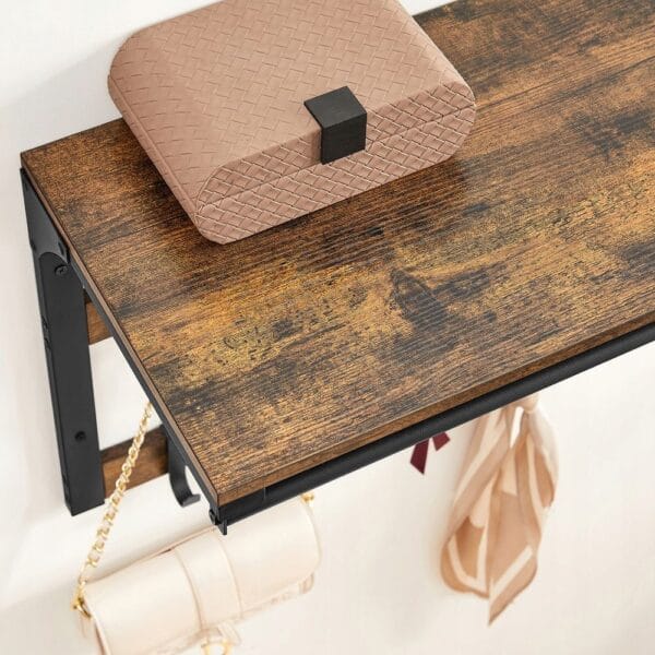 Wieszak ścienny z półką i drążkiem 10 haczyków styl loft VASAGLE