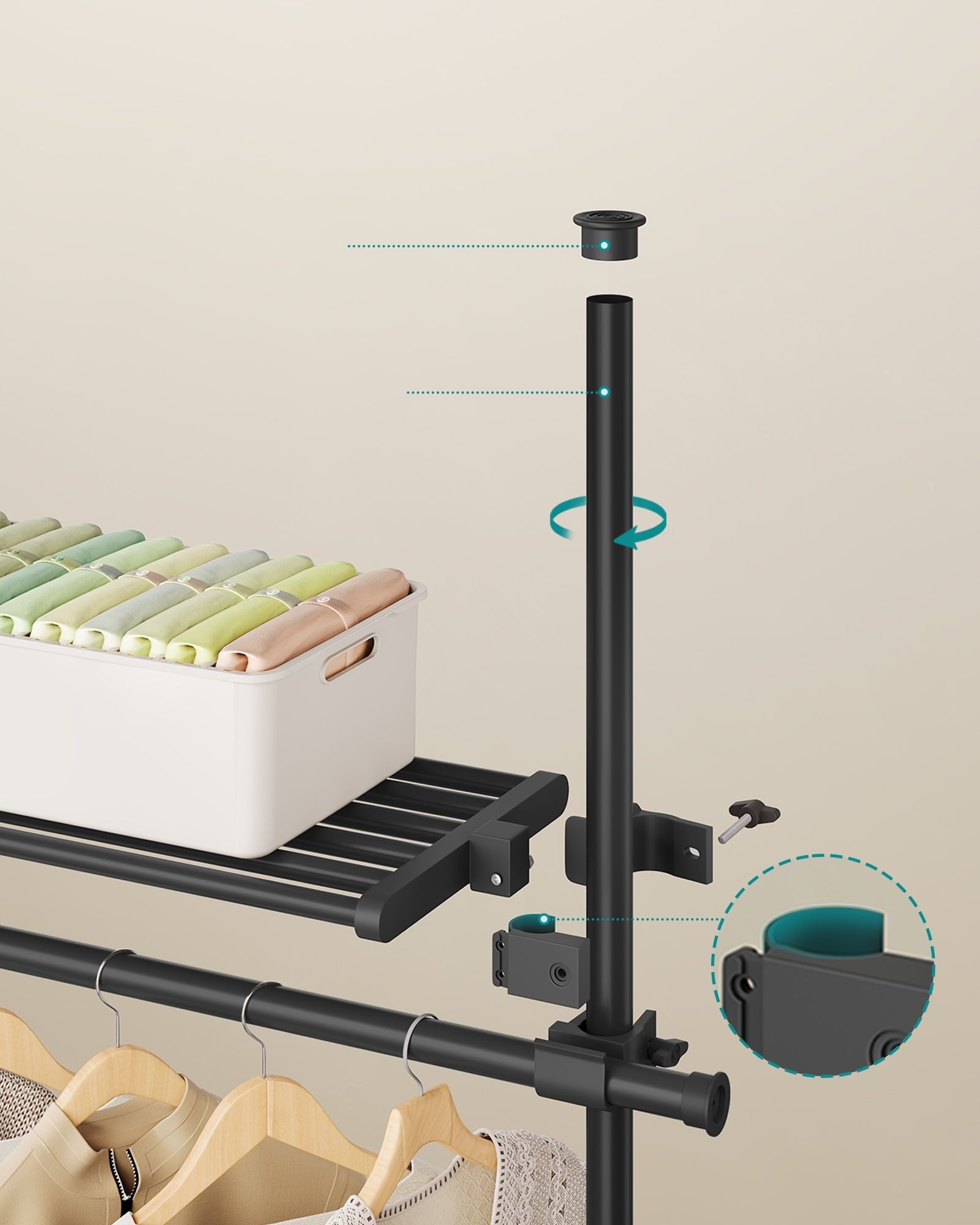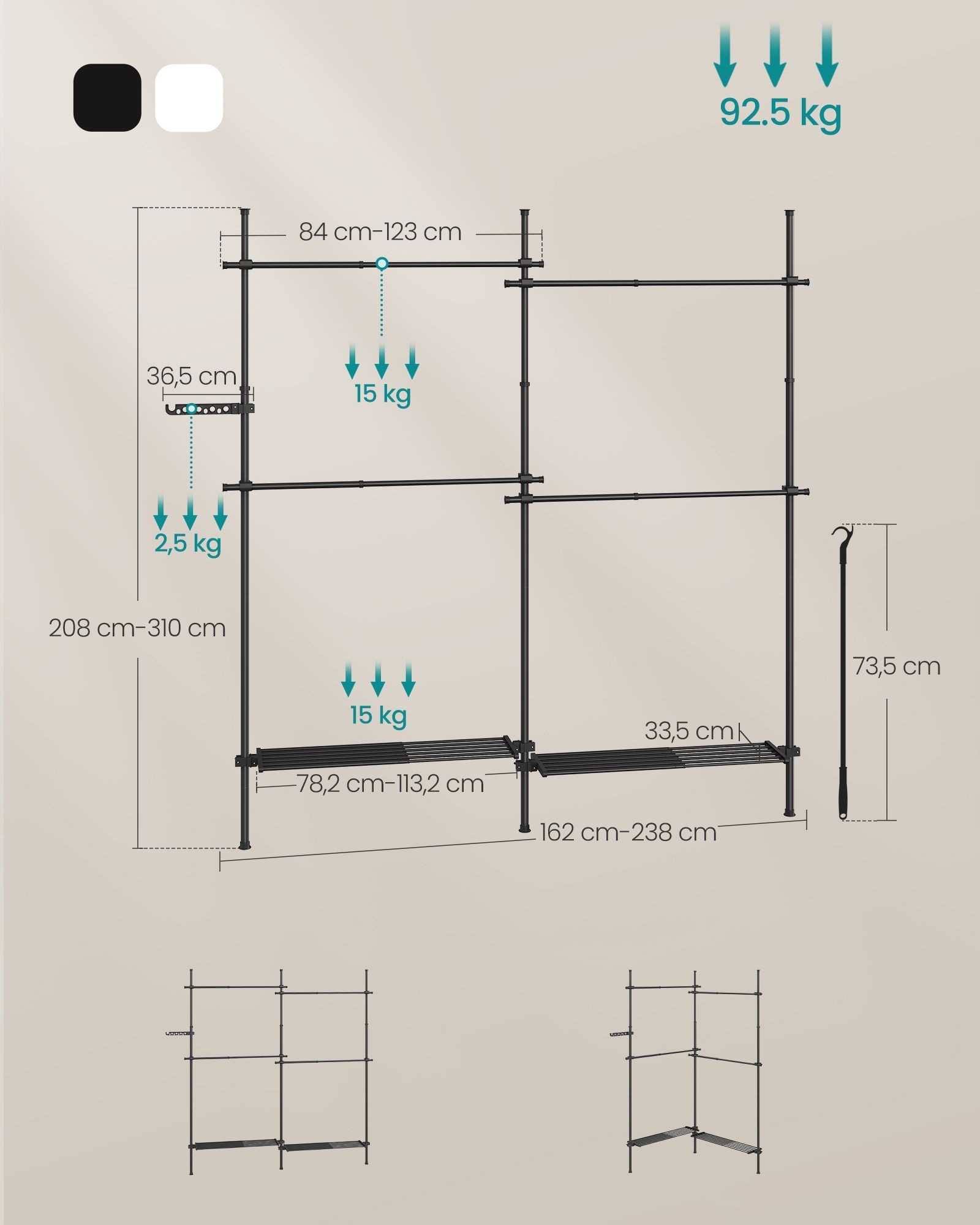 Wieszak teleskopowy do sufitu 162-238×208-310 cm czarny SONGMICS
