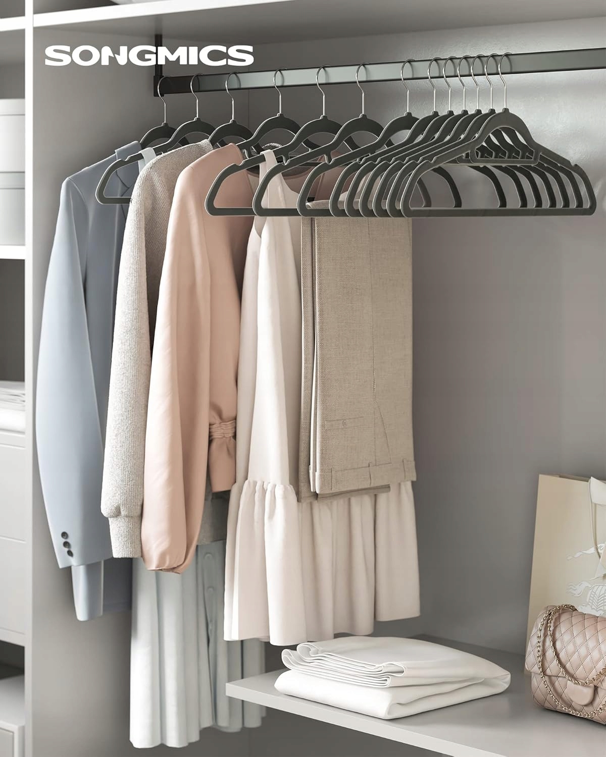 Zestaw 20 wieszaków welurowych SONGMICS to idealne rozwiązanie dla osób, które chcą utrzymać porządek w szafie i maksymalnie wykorzystać przestrzeń.
