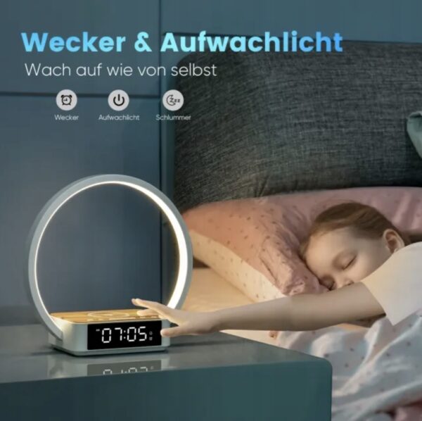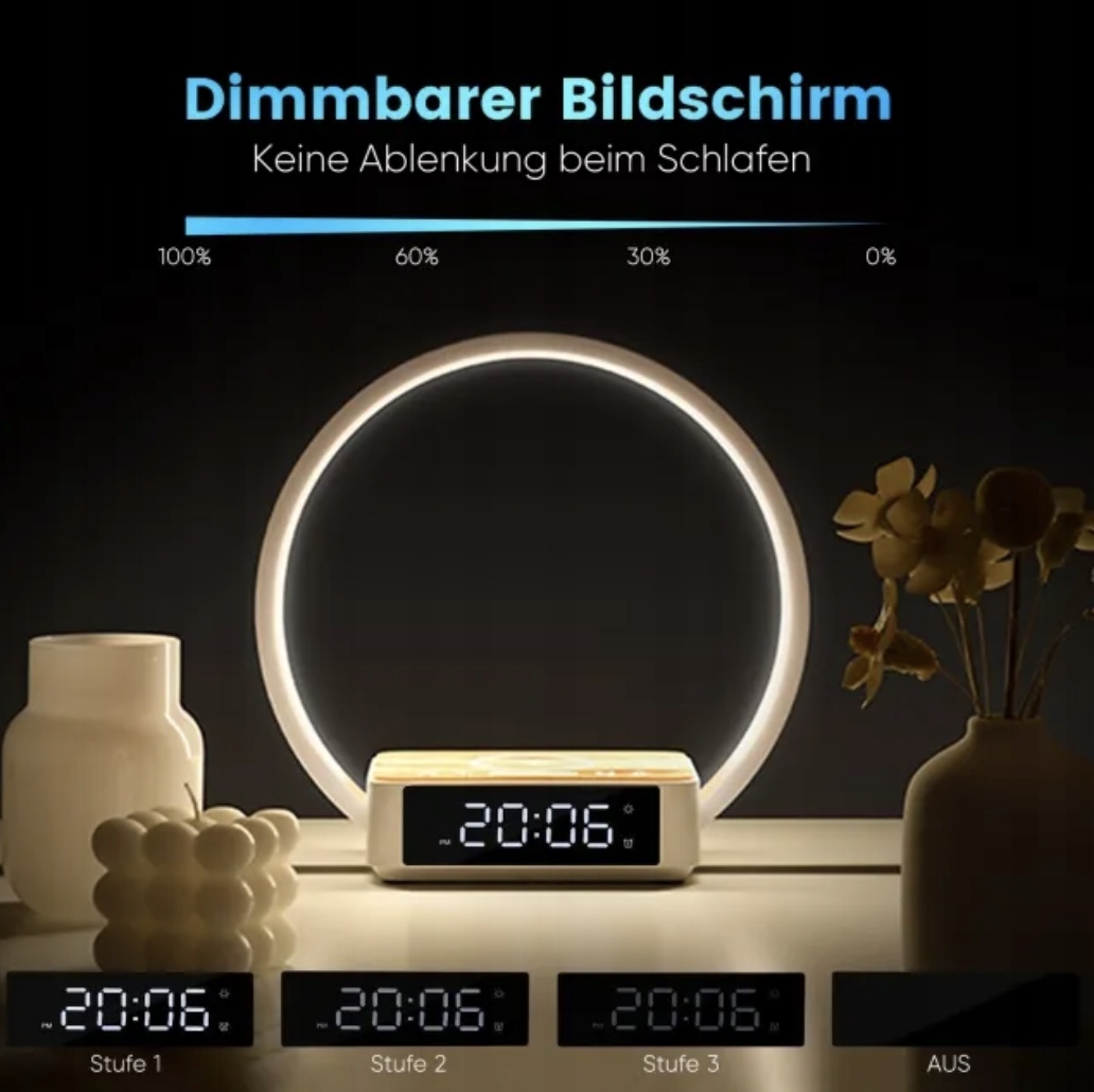 ✅ Lampka nocna ze światłem budzenia i budzikiem: Gdy lampka budzenia jest włączona, symuluje wschód słońca i zapala się 10 minut przed godziną alarmu (można ją wyłączyć).