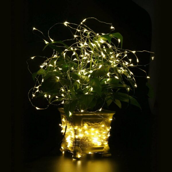 ⭐️ Mikro łańcuch świetlny LED na miedzianym drucie z 100 diodami LED o barwie ciepłej bieli zapewnia błyszczące oświetlenie dekoracyjne do małych projektów. Nadaj swoim kwiatom blasku, oświetl małe dekoracyjne słoiki i latarnie lub zwiń łańcuch świetlny wokół małych lusterek.