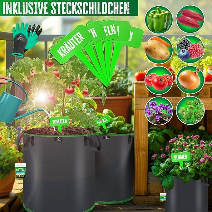 - Tabliczki do oznaczania: Każdy worek posiada miejsce na etykietę – idealne do oznaczania nazw roślin, dat sadzenia lub innych ważnych informacji.