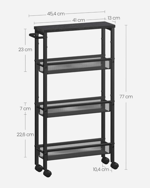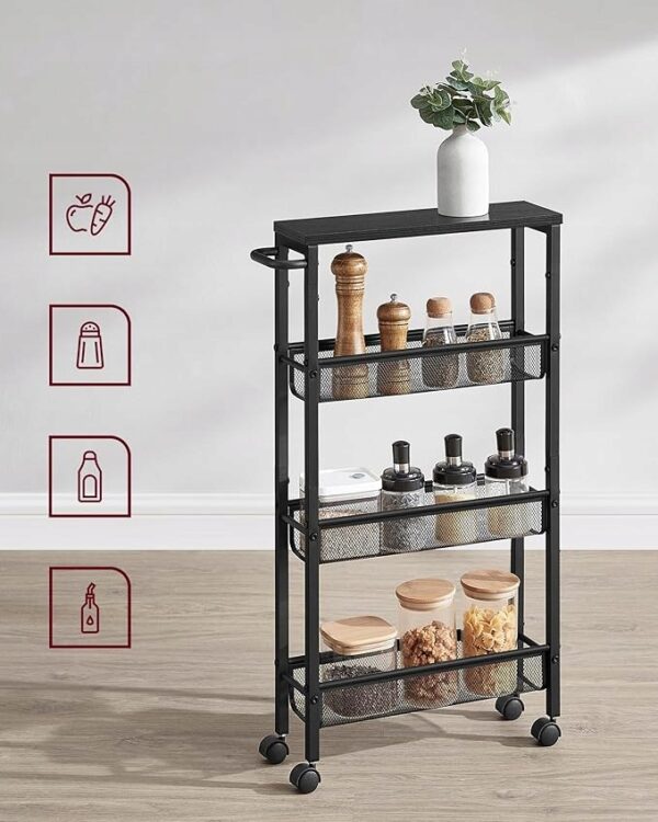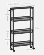 VASAGLE Wózek kuchenny wąski 4 poziomy na kółkach hebanowo-czarny