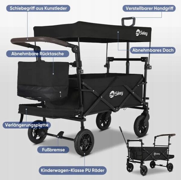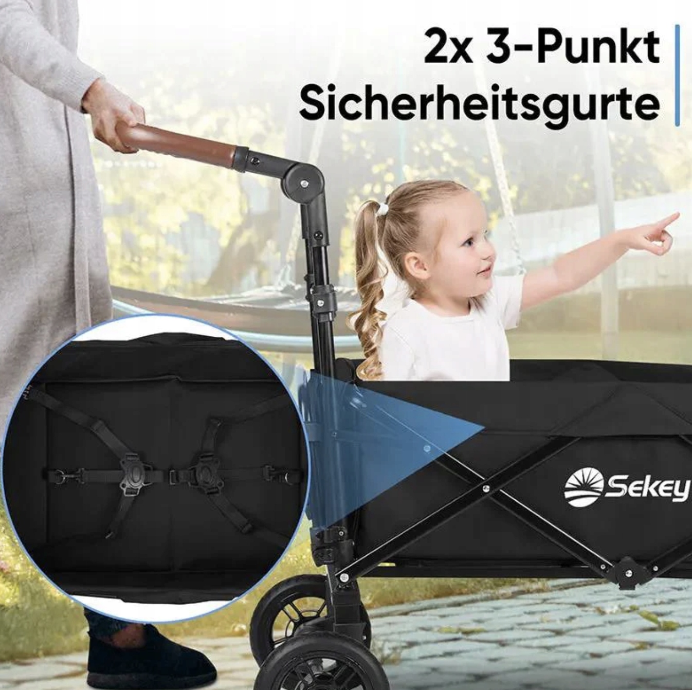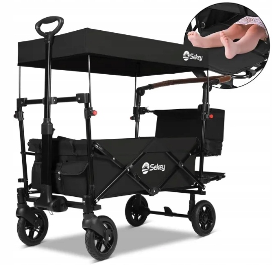 Wózek składany dla dzieci Sekey 150kg z dachem pasy czarny