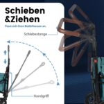 Koła PU montowane są bez użycia narzędzi co pozwala szybko przygotować wózek do jazdy. Składana konstrukcja ułatwia transport i przechowywanie w domu lub bagażniku.